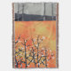 Semi abstract landscape painting of blackthorn blossom. Orange, white and grey. Original art by Nic Squirrell.