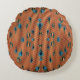 Burnt Orange and Blue Fabric Pattern Round Cushion
