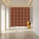 Experience the rich visual texture of this burnt orange and deep red symmetrical African tile. The interplay of warm hues and the balanced, repeating pattern create a sense of depth and visual interest.