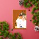 Burnt Orange Arch Bohemian Real Gold Foil Minimal Leaf Photo Save the Date Card With Elegant Calligraphy.