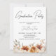 Sweet bohemian floral themed graduation party invitation featuring a lovely burnt orange and beige floral arrangement and an editable modern calligraphy font. The back of the invitation features the graduates photo and some details.