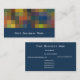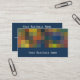 An eye-catching business card for many types of business, with squares in burnt orange, browns and navy, with white lettering on navy blue background. Fully and easily customisable.