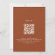 Back: dark burnt orange background. Add your wedding website url to the QR code for your guests to scan for more details/RSVP
