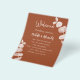 Dark burnt orange background, decorated with eucalyptus stems, sprigs. Personalise and add your names and the details.