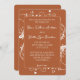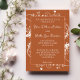 Set the tone for a timeless celebration with this Burnt Orange Flourish Wedding Invitation. Featuring graceful white flourishes, delicate white botanical elements, and flowing white leaves, this design evokes a soft, feminine aesthetic perfect for romantic weddings. Elegant script pairs beautifully with modern typography to highlight the names of the bride and groom and essential wedding details. Ideal for garden-inspired or classic themes, this invitation brings effortless sophistication to your special day.
