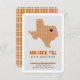 Let them know where you're going with this classy moving announcement. Features the state of Texas in a grid pattern with a heart you can move to show where your new house is. Backside features a larger version of the same square pattern or you can replace that with your favourite family photo. Comes in burnt orange, maroon, red, state flag blue, green, purple, orange, black and yellow - most based on state school colours. Matching products available.