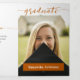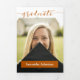 Elegant script announces your graduate over your favourite senior photo on the front. Block for their name on the front, and all the ceremony details inside along with two more pictures. Space on the back for a thank you message to friends and family. Design available in school colours of red, orange, purple, green, blue, burnt orange, maroon. Matching products available.