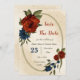 burnt orange navy flowers botanical save the date