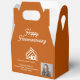 This professional burnt orange and white favor box is customized with your real estate company name and realtor photo under the modern cursive script. Congratulate your clients on a Happy Housewarming with these custom congratulations boxes. Add your realty agent photo for marketing underneath the modern house logo.