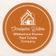 This professional realtor paper coaster is custom made with your real estate company name under the modern cursive script for an open house. This burnt orange realty business party decor features a house logo image for home builder or realty agent company marketing.