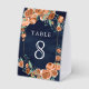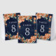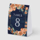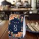 Burnt Orange Rose Floral Navy Wedding Table Number