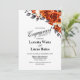 Invite your friends and loved ones to your engagement party with this burnt orange floral engagement party invitation that features an image of the happy couple on the reverse side.