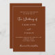 Burnt orange, rust coloured background. Personalise and add your names and the details. White text.