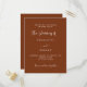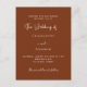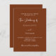 Burnt orange, rust coloured background. Personalise and add your names and the details. White text.