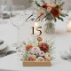 Burnt Orange Sage Flowers Wedding Table Number