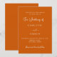 Burnt orange coloured background. Personalise and add your names and the details. White text.