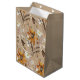 Medium Gift Bag depicts an elegant fall floral botanical garden wildflower design with simple burnt orange and white flowers and foliage on a tan background.