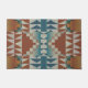 Burnt Orange Taupe Brown Teal Blue Tribal Art Doormat