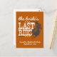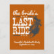 Yee haw!!! It's time to celebrate one last time before this cowgirl gets hitched! It's the bride's last ride before she settles down, also known as a bachelorette or hen party. Design features a cowgirl racing on her horse with distressed western and fat script text and stars. Perfect for a western or country themed event. Shown in burnt orange. Also available in a combination of pinks, state flag blue and red, and maroon. Matching products available.