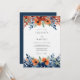 A vibrant watercolor design featuring bold burnt orange blooms accented by deep indigo and sage green foliage. The artistic arrangement evokes a rich, painterly aesthetic for a memorable occasion.