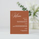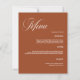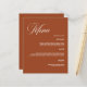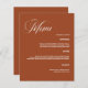 Burnt orange coloured background. Personalise and add your names, date and the menu. White text.