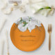 Make your wedding reception pop with our vibrant Burnt Orange White Botanical Wedding Paper Plates, adorned with a delicate bouquet of pristine white roses at the top. Elevating the essence of your special day, these plates bring a burst of colour and elegance to your table setting. Personalised with the names of the bride and groom, alongside the cherished wedding date, these plates add a personalised touch that commemorates your union in style. Crafted with premium-quality materials, they not only showcase your unique aesthetic but also ensure durability and reliability throughout the festivities. Whether serving up delectable hors d'oeuvres or sumptuous desserts, these plates effortlessly blend functionality with aesthetics, making them a must-have addition to your wedding celebration. Embrace the joyous spirit of your nuptials with every detail meticulously crafted, down to the last rose petal and personalised touch. Perfect for both indoor and outdoor receptions, these plates offer convenience without compromising on sophistication, allowing you to focus on creating timeless memories with your loved ones. Let your love bloom amidst the radiant hues of orange and the purity of white roses with our enchanting Burnt Orange Wedding Paper Plates.