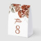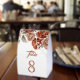 Elegant terracotta theme wedding table number featuring beautiful earthy flowers.