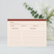 File your recipes in style with this Burnt Umber Sayings Family Country Recipes Card. The burnt umber background on the back anchors the word art feature showcasing various words connected to recipes: aromas, desserts, casseroles, grandma's, favourites, bread, cakes, pasta, barbeque, roast, dips, marinades, etc. The front focuses on the recipe: ingredients, directions, cook and prep time, etc. Designed to complement the recipe binder with the same design, these recipe cards will be perfect in your kitchen or as a housewarming gift.