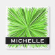 This vibrant magnet design features a pattern of lines of different shades of green bursting outward from a central point. It also features a customised name.