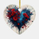 Bursting Blue Heart with Red Flowers Ceramic Tree Decoration