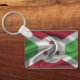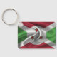 Keychain with the flag of Burundi in wavy fabric style design. This design features the Burundian flag colours and design with a beautiful waving material textured effect. This flag design is a great way to show you are proud to be from Burundi.