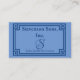Monogram, name and business centred within a double lined border with square keys in the corner. Background in light light blue colour, Text is dark blue. On back, personalise with name, title, address, contact information.