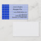 Three dimensional blue squares are multiplied over the entire card, resembling ceramic or glass tiles. Three left vertical rows are dark blue, remainder of squares are a faint backdrop to the pertinent business information of Name, Business, contact numbers (all to be personalised).