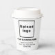 Customizable paper cup for your cafe business. Paper cup with the address of your coffee shop business for customers to know and easily find it when they will come back again or recommend it to their families or friends. Paper cup with your business phone number for customers to know the number to call when they will order again by phone. Paper cup color is white and font color is black. To customize this paper cup, upload your business logo, type your business or company name, address and phone number. Please check the appearance on front and back sides after uploading logo and typing texts. If the appearance is pleasing to you, you can place your order now. If you need to resize and move the logo and texts to fit on this paper cup, please change in the design tool. You can also make other changes according to your preference in the design tool such as changing the cup color, font color and font style. Customize it and use it like a marketing material to advertise your business, promote your brand name or build brand name awareness while your customers enjoy sipping the tasty and aromatic coffee that you served to them.