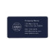 A simple custom stylish navy blue business label template in a modern minimalist style, perfect for creating professional branded mailing stickers. This clean and contemporary design can be easily personalized with your company logo, business name, address, telephone, email and website address or other company contact info, to give every package, envelope, or parcel a polished look. Ideal for small businesses, boutiques, or creative studios looking to enhance their brand identity with cohesive packaging. These labels are a practical and stylish way to streamline your shipping process while maintaining a professional presentation. Customize yours to reflect your unique brand style and make every delivery stand out with minimal effort.