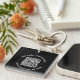 Black and white key ring with QR code and two lines of curved text. Advertise a business with name that curves around the top and address at the bottom. This key ring has the design on one side only.