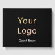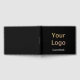 A display image is on the front of this black guest book. You can replace the image with your logo. A line of white display text is below the image. You can edit the text if desired (shown: Guest Book). Additional display text is on the spine. You can edit or delete the text on the spine.