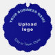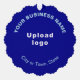 Scalloped paper ornament card with your business name, logo, city or town and state. You can use it as accessory of packaging material of your product. Ornament card as tag of your product. Ornament card that you can use as marketing material to promote your brand name or to advertise your business to customers. Ornament card with your business brand to build brand name awareness. Design colours are light blue and white texts on blue background. Please check the appearance on front and back sides after uploading logo and typing texts. If the appearance is pleasing to you, you can place your order now. If you need to resize and move the logo and texts to fit on this ornament card or on the style that you will choose, please change in the design tool. You can also change the background colour, font colour and font style in the design tool.
