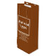 Wine gift bag that you can customise to put your business name and other information of your business. Customise and include it in your marketing strategies in advertising your business or in promoting your brand name to customers or clients. Customisable packaging material that you can use to build brand name awareness. Design colours are light brown and white texts on brown background. To customise this wine gift bag, upload your business logo, type your business name, address, phone number, e-mail and website or your business social media page. After uploading logo and typing texts, please check the appearance. If the appearance is pleasing to you, you can place your order now. If you need to resize and move the logo and texts to fit on this gift bag, please change in the design tool. You can also change the background colour, font colour and font style in the design tool.