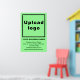 Poster that you can customize to put your business name. You can use it as marketing material to advertise your business or to promote your brand name to customers or clients. Customizable poster that you can use to build brand name awareness. Customize it and display it on the wall of your office, entrance, reception, lobby or in suitable places visible to customers or clients. Designs are dark green texts on light green background and portrait format rectangle shape. To customize this poster, upload your business logo, type your business or company name, address, phone number, e-mail and website or social media page. Please check the appearance after uploading logo and typing texts. If the appearance is pleasing to you, you can place your order now. If you need to resize and move the logo and texts to fit on this poster or on other shapes and sizes that you will choose, please change in the design tool. You can also make other changes according to the appearance that you prefer in the design tool such as changing the poster background color, font color and font style.
