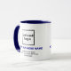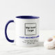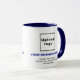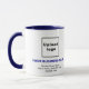 Navy blue combo mug that you can customise to put your business brand to build brand name awareness while your customers enjoy sipping the aromatic and tasty coffee or tea that you served to them in your coffee shop, diner or restaurant business. Mug as promotional product, giveaway item or gift to your customers or clients, a marketing strategy to advertise your business or to promote your brand. To customise this mug, upload your business logo, type your business name, address and phone number. Please check the appearance on front and back sides after uploading logo and typing texts. If the appearance is pleasing to you, you can place your order now. If you need to resize and move the logo and texts to fit on this mug or on the size and style that you will choose, please change in the design tool. You can also change the font colour and font style in the design tool.