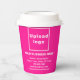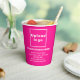 Paper cup that you can customise to put the name and some basic information of your cafe business. Customise it and use it like a marketing material to advertise your business or to promote your brand name. Build brand name awareness while your customers enjoy sipping the tasty and aromatic coffee that you served to them. Paper cup colour is pink and font colour is white. To customise this paper cup, upload your business logo, type your business or company name, address, phone number, e-mail and website or social media page. After uploading logo and typing texts, please check the appearance on front and back sides. If the appearance is pleasing to you, you can place your order now. If you need to resize and move the logo and texts to fit on this paper cup, please change in the design tool. You can also make other changes in the design tool according to the appearance of this paper cup that you prefer such as changing the cup colour, font colour and font style.