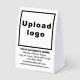 White tent style paper table sign that you can customize by uploading your business logo, typing your business name, address, phone number, e-mail and website or social media page. Customize and display it on your desk as a marketing material to advertise your business or to promote your brand to customers or clients. Customizable office desk accessory that you can use to build brand name awareness. Please check the appearance after uploading logo and typing texts. If the appearance is pleasing to you, you can place your order now. If you need to resize or reposition the logo and texts, please adjust in the design tool. You can also change the font style, font color and background color in the design tool.