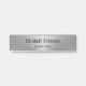 This modern office door sign has a brushed metal look. (The look is artwork, not foil.) There are two lines of dark grey display text that you can edit to show the correct name and professional title.
