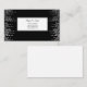 This business card is shown in a black and white abstract pattern with black text.