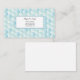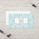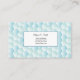 This business card is shown in a blue multi colour abstract pattern with black text.