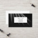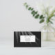 This business card is shown in a black and grey colour abstract print with black text.