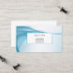 This business card is shown in the basic card stock with a modern abstract print in blue tones with black text.