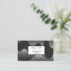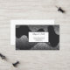 This business card is shown in a black and white abstract art print.