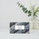 This business card is shown in a blue and black abstract pattern.